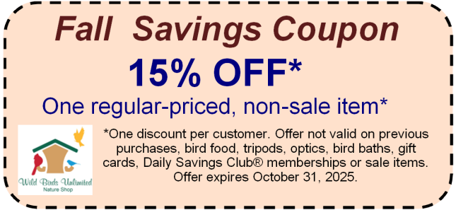 When birds sense the change of seasons from Summer to Fall to Winter their body clocks tell them to start storing high-protein food to help them survive the colder winter months. Songbirds like Chickadees, Nuthatches, Blue Jays and Titmice, the black oil seed lovers, grab heavier seeds (because they have a higher oil content) from your feeders to hide them in knotholes, under tree bark, under shingles, in crevices under branches, and at our house, above the closed windows near the feeders. Amazingly they remember where each seed is cached and rely on them all winter. Look for activity like this during the middle of the day as they store their seed from 45’ up to 2.5 miles from your feeders.